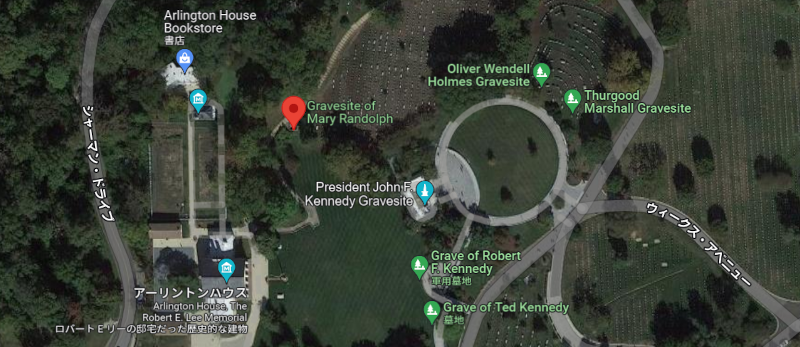 もともとアーリントン墓地は、1864年に南北戦争の戦没者のため、南軍のロバート・E・リー将軍の住居周辺の土地に築かれたのが始まりだったとされている。しかしメアリー・ランドルフは南北戦争以前に埋葬されているので、戦争と関係していたという訳ではない。ではなぜ彼女はアーリントンに埋葬されたのだろうか。